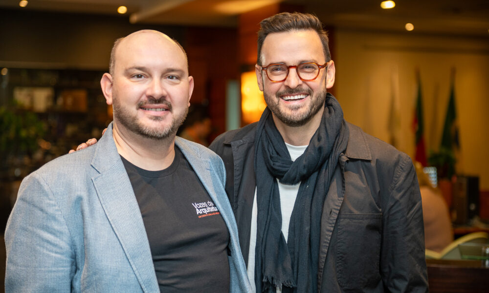 O presidente da Associação Sala de Arquitetos, Ênio Stumpf, junto do palestrante Francisco César Groch (Crédito das fotos: Fábio Grison) O Hotel Intercity Caxias do...
